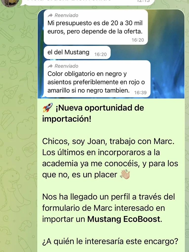 No necesitas tener capital propio. Dentro de la academia enseñamos cómo trabajar con el dinero de terceros: personas que ya tienen el dinero y quieren que tú les gestiones la importación. Tú solo haces de intermediario, te llevas tu parte del beneficio… y conduces el coche unos días si quieres.